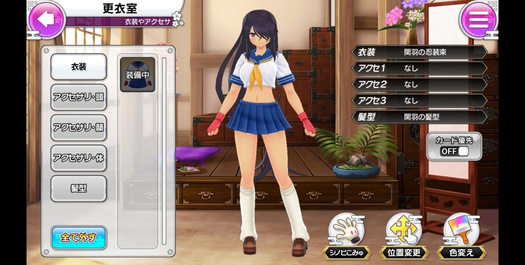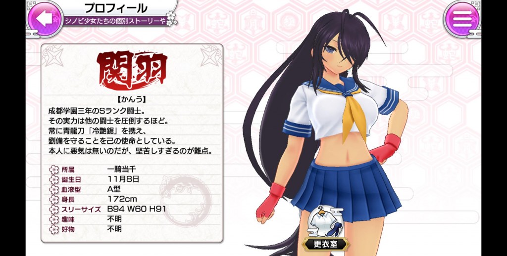 関羽の着せ替え画面